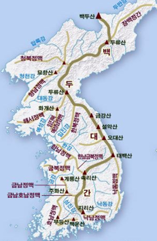 "백두대간(白頭大幹)" 이라는 용어를 사용하였고 산맥 상황도