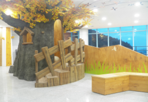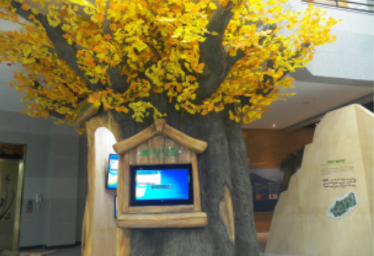거창에서 가장 오래된 연수사 은행나무가 백두대간의 이야기를 들려주는 의미로 1층에서 2층까지 연출되며