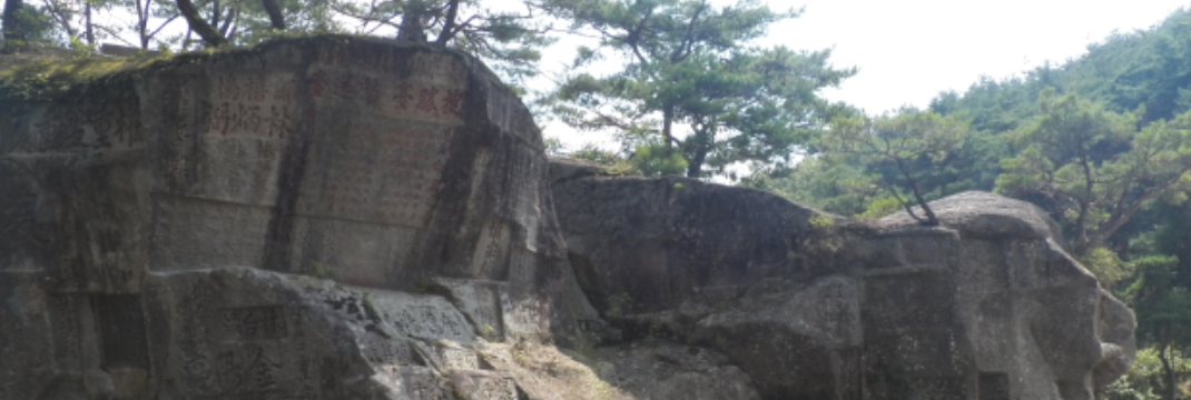수승대 거북바위에 이황의 개명시를 비롯하여 여러 풍류가의 시들을 소개하고 한자의 의미들을 이해하며 써볼 수 있습니다.
