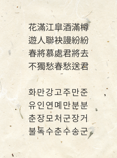 꽃은 강 언덕에 가득하고 술은 동이에 가득한데